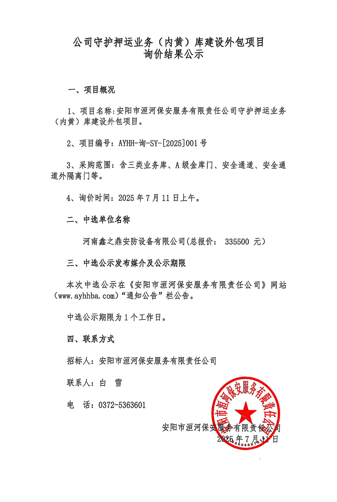 公司守護(hù)押運(yùn)業(yè)務(wù)(內(nèi)黃)庫建設(shè)外包項(xiàng)目詢價結(jié)果公示